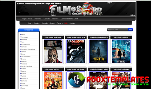 Template filmes onlines br 2colunas, Adulto, Anime, Editavel, Filmes, Series.